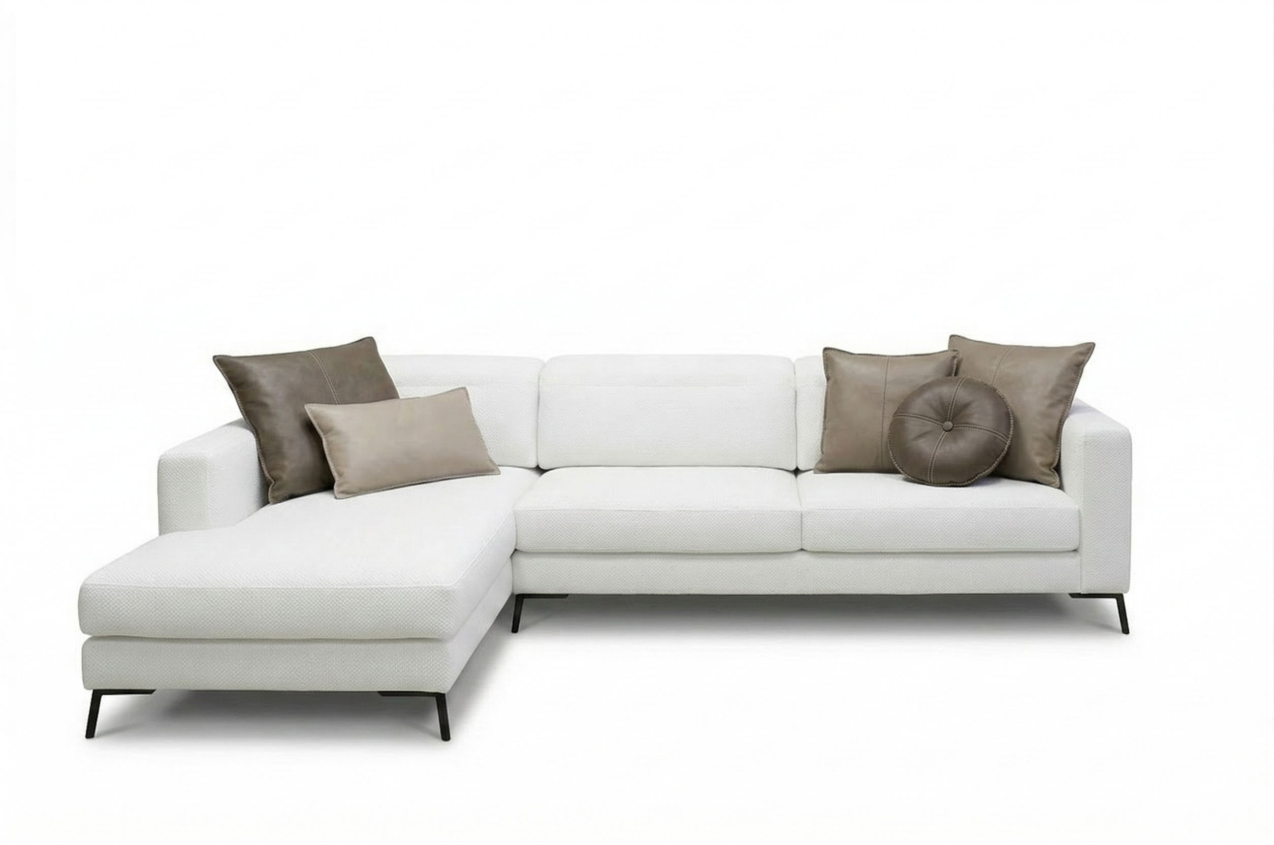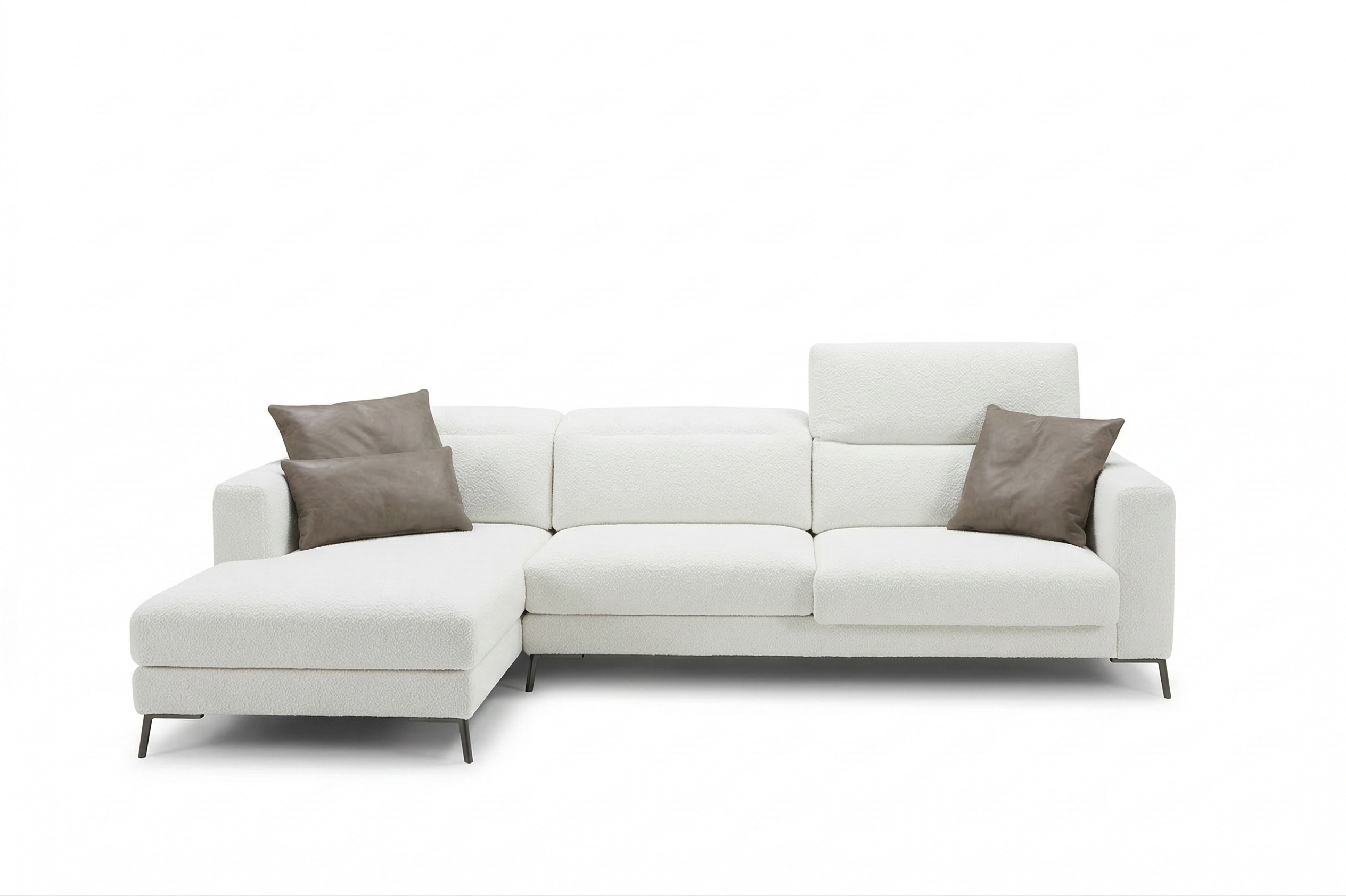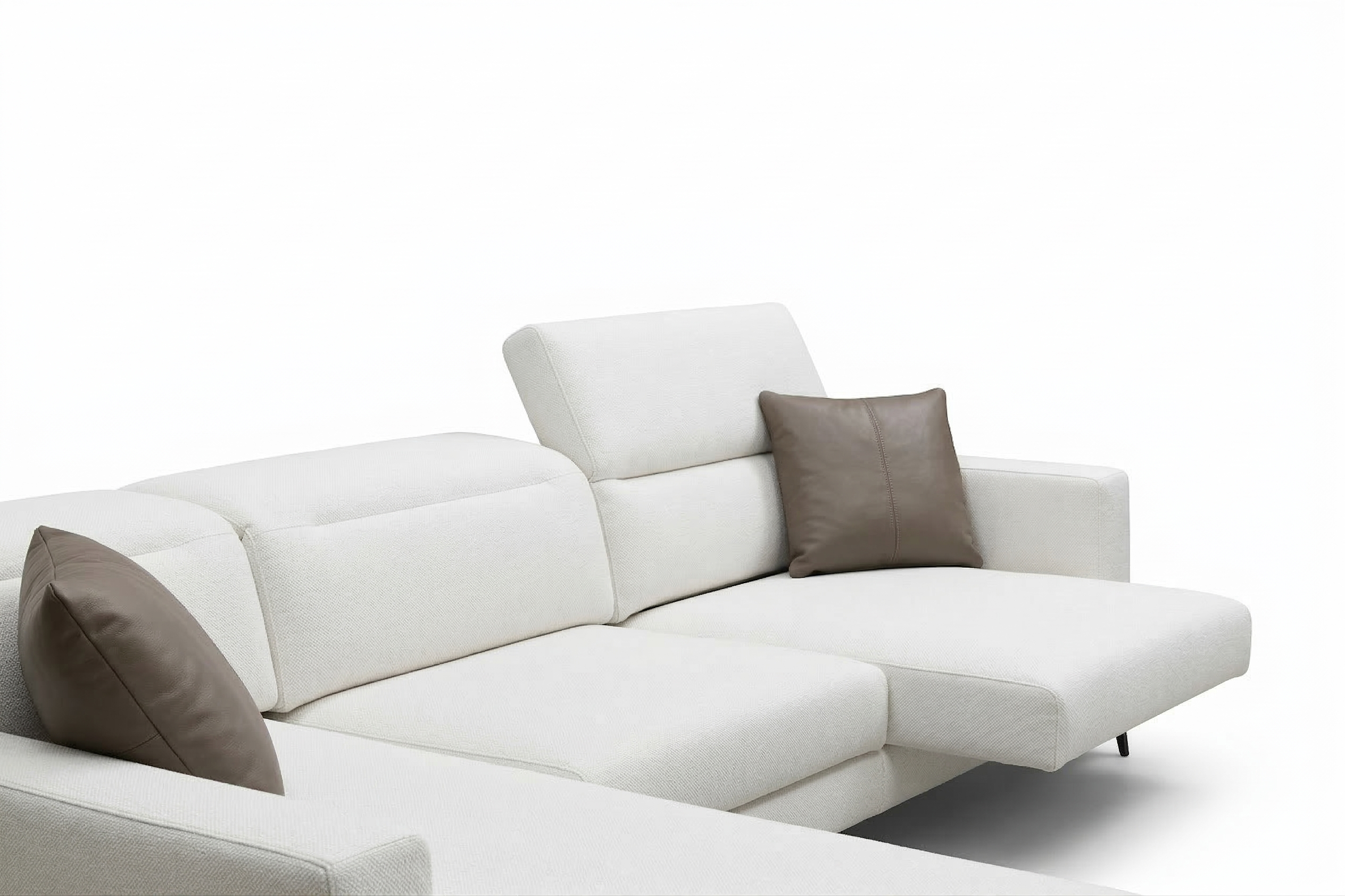 Struttura in legno con cinghie elastiche rivestita con poliuretano espanso indeformabile e tessuto protettivo accoppiato. Cuscini seduta in poliuretano espanso indeformabile e Dacron. Cuscini schienale in poliuretano espanso con trapuntino in piuma. Rivestimento in tessuto sfoderabile. In pelle è fisso. Seduta estraibile in tre diverse posizioni con estensione massima di 35cm. Schienale reclinabile in 24 posizioni.